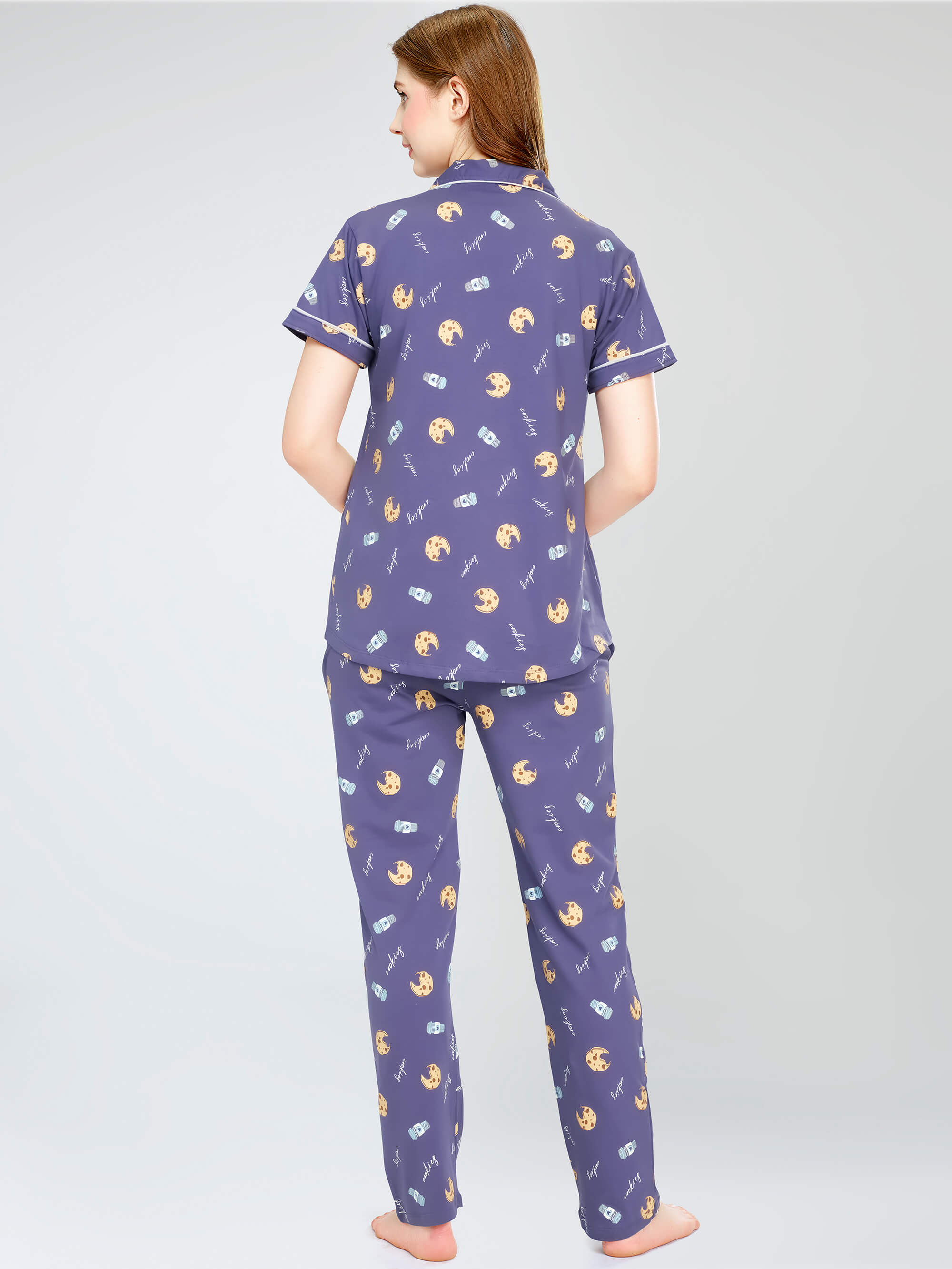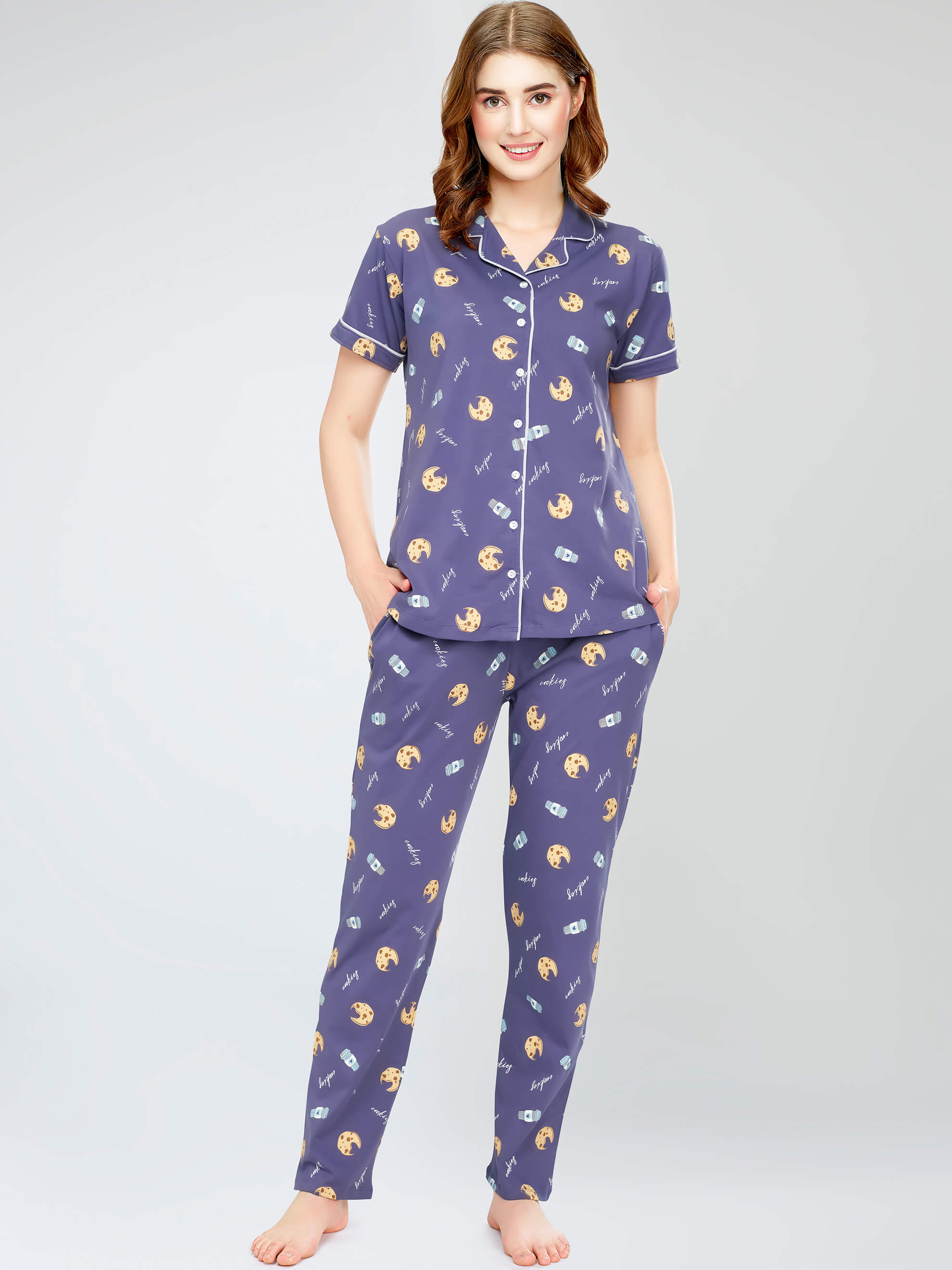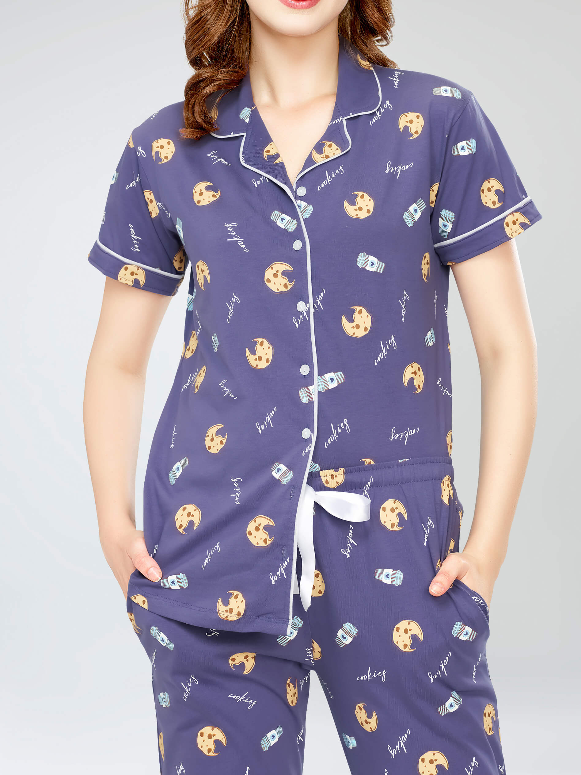 - Blue Cookies & Cup printed night suit consists of shirt and pyjamas