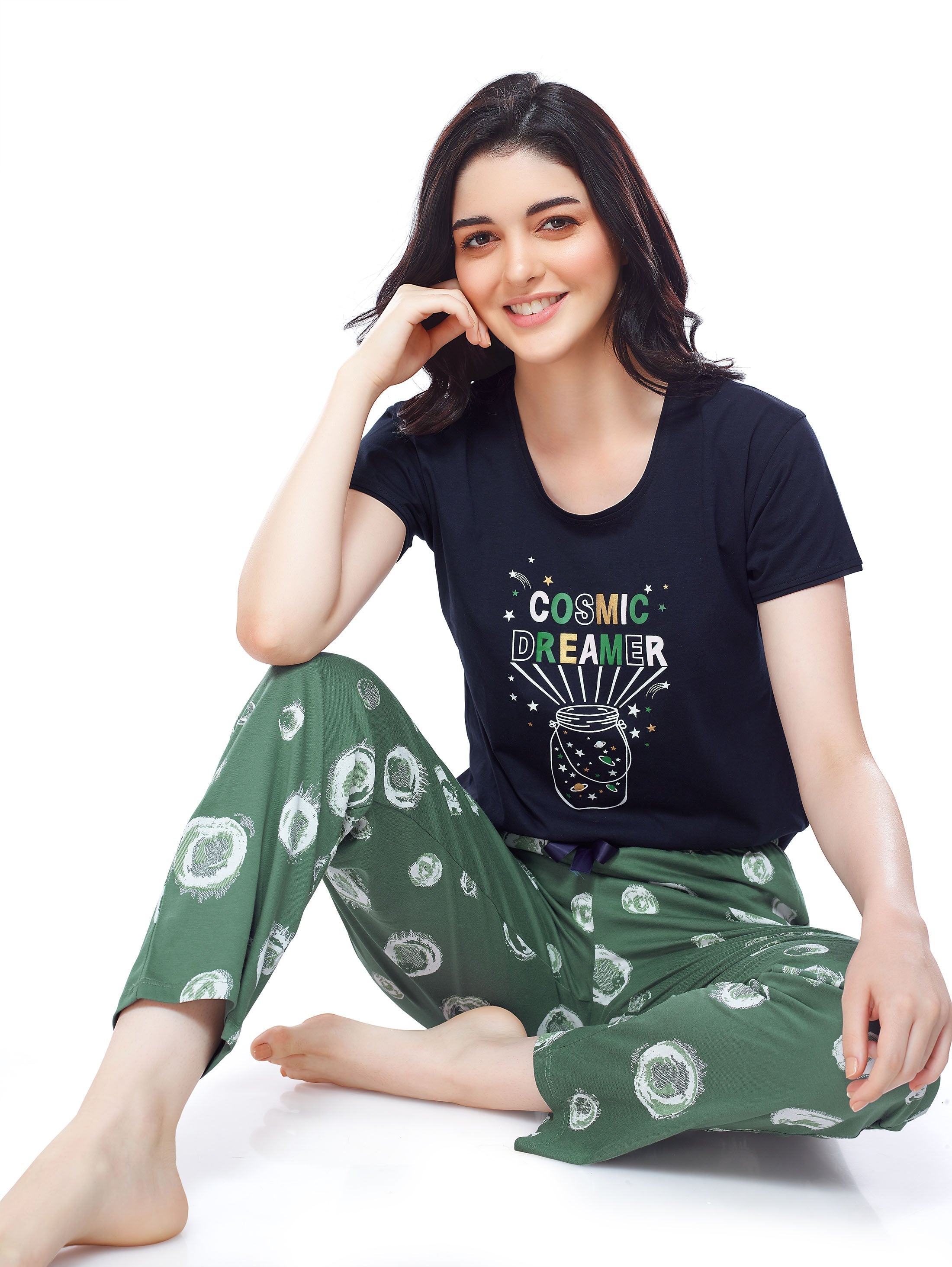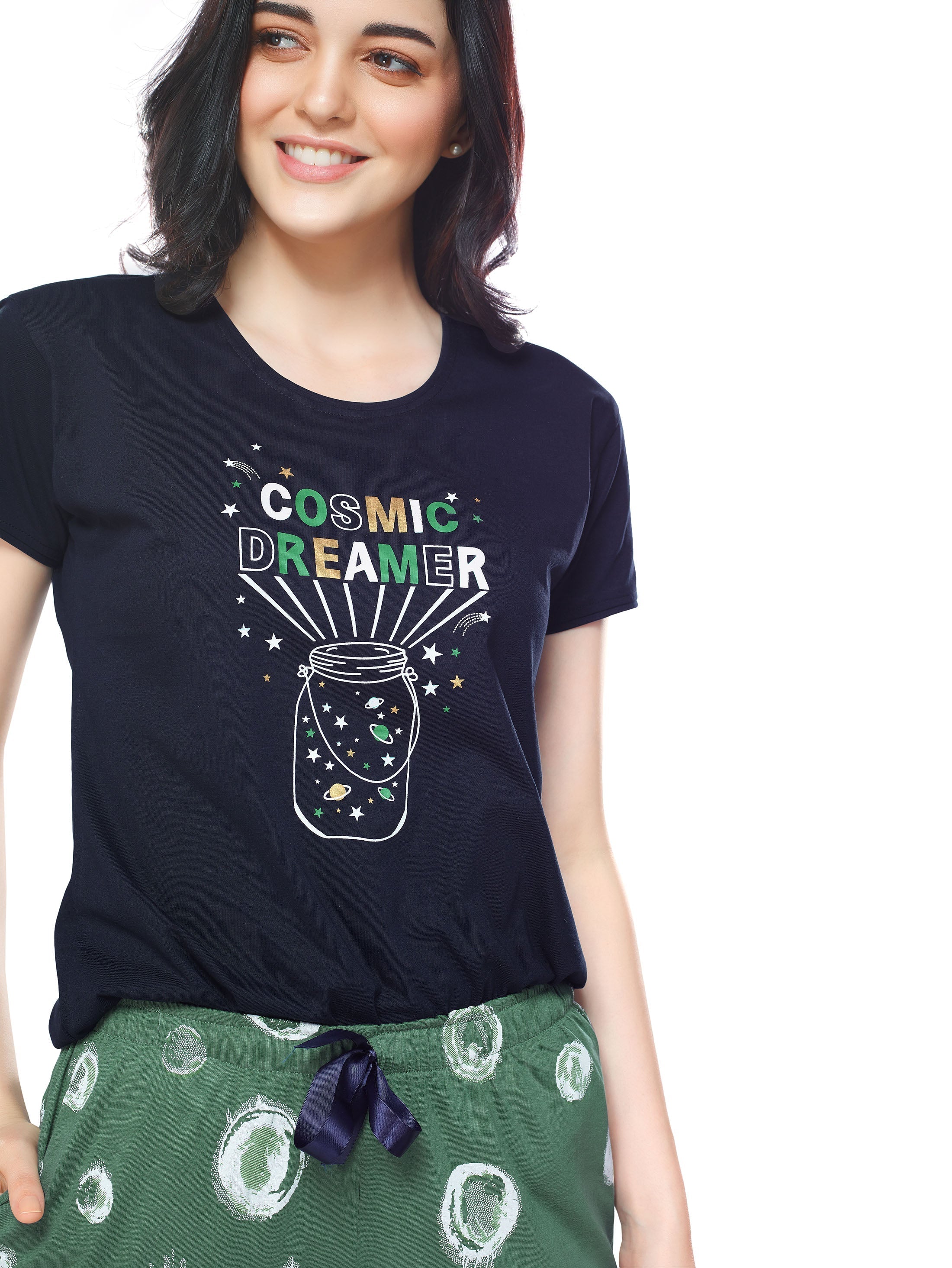 Make most of the comfort offered by range of night suit. The classic colour and fun pattern of this piece makes it a must have for your wardrobe. Wear it with contrast coloured flip flops for a complete relaxed day at home!