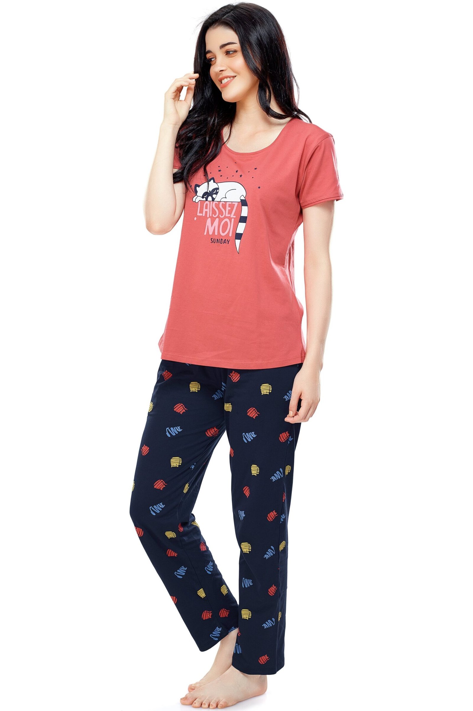 On those weekends at home when you simply wish to laze around on the couch, be stylishly comfortable in this lounge set from. Put on a pair of colour ful flip flops along for a cool verve.