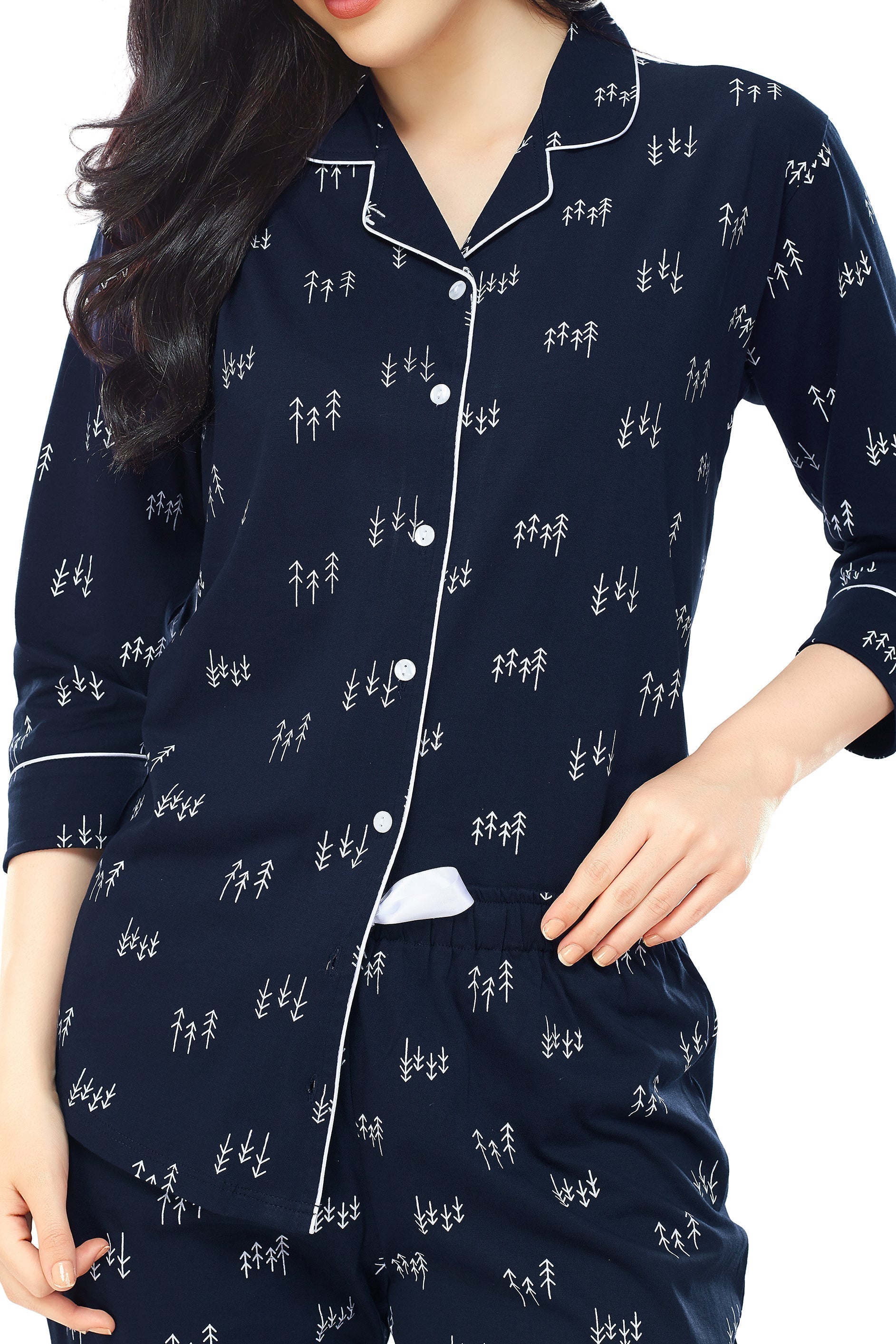 - Navy blue arrow printed night suit consists of shirt and pyjamas