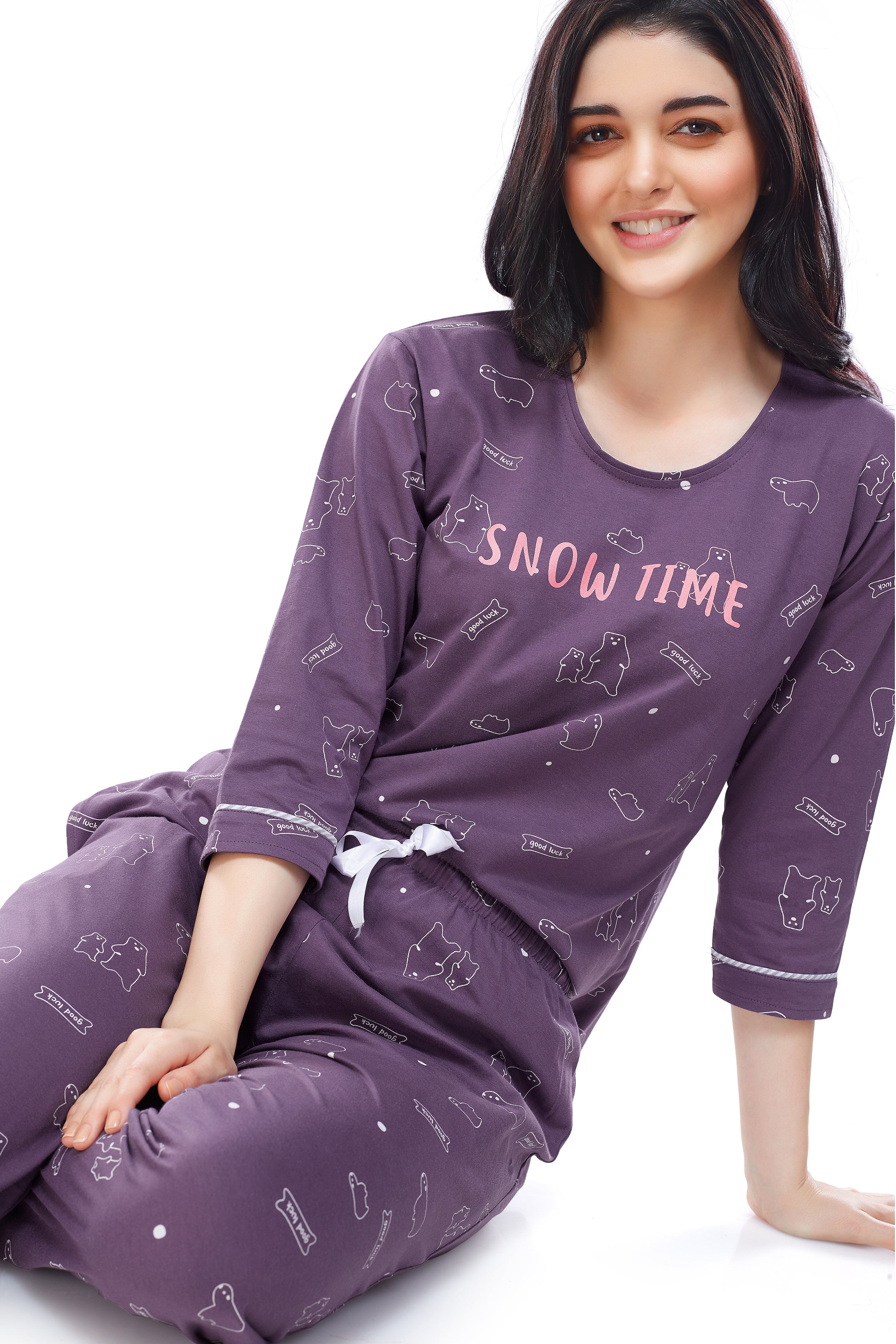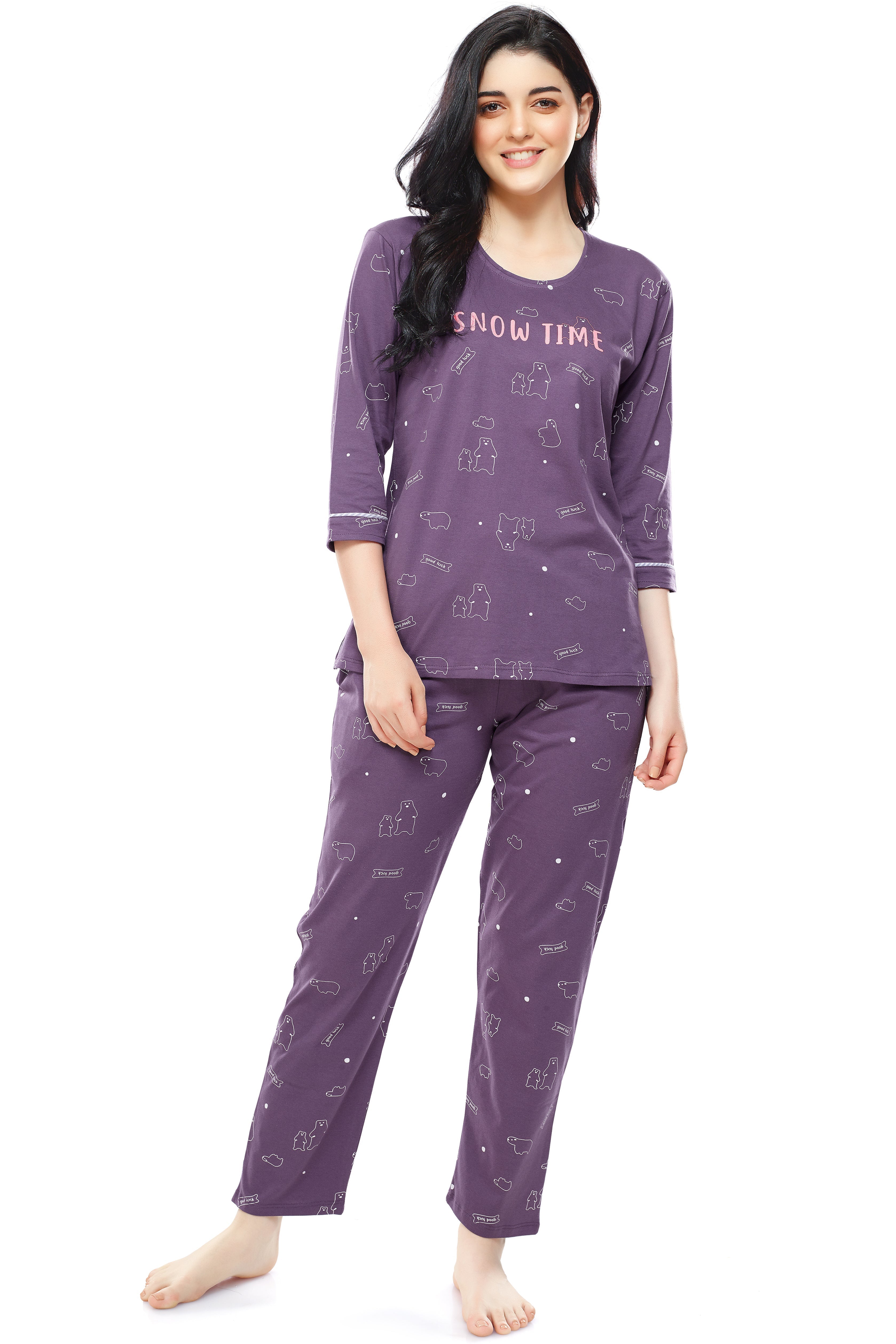 - Purple Bear printed night suit consist of top and a pyjama