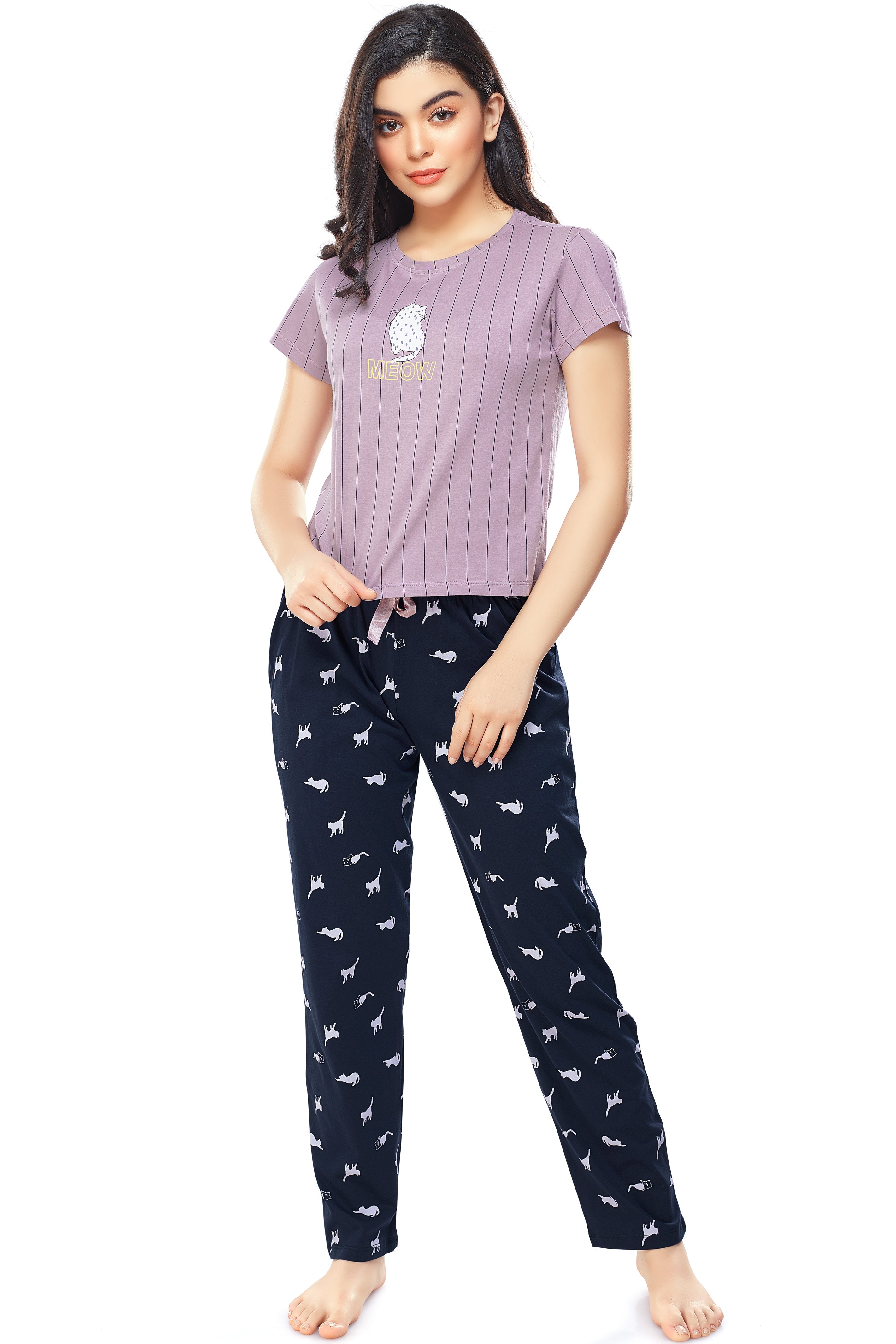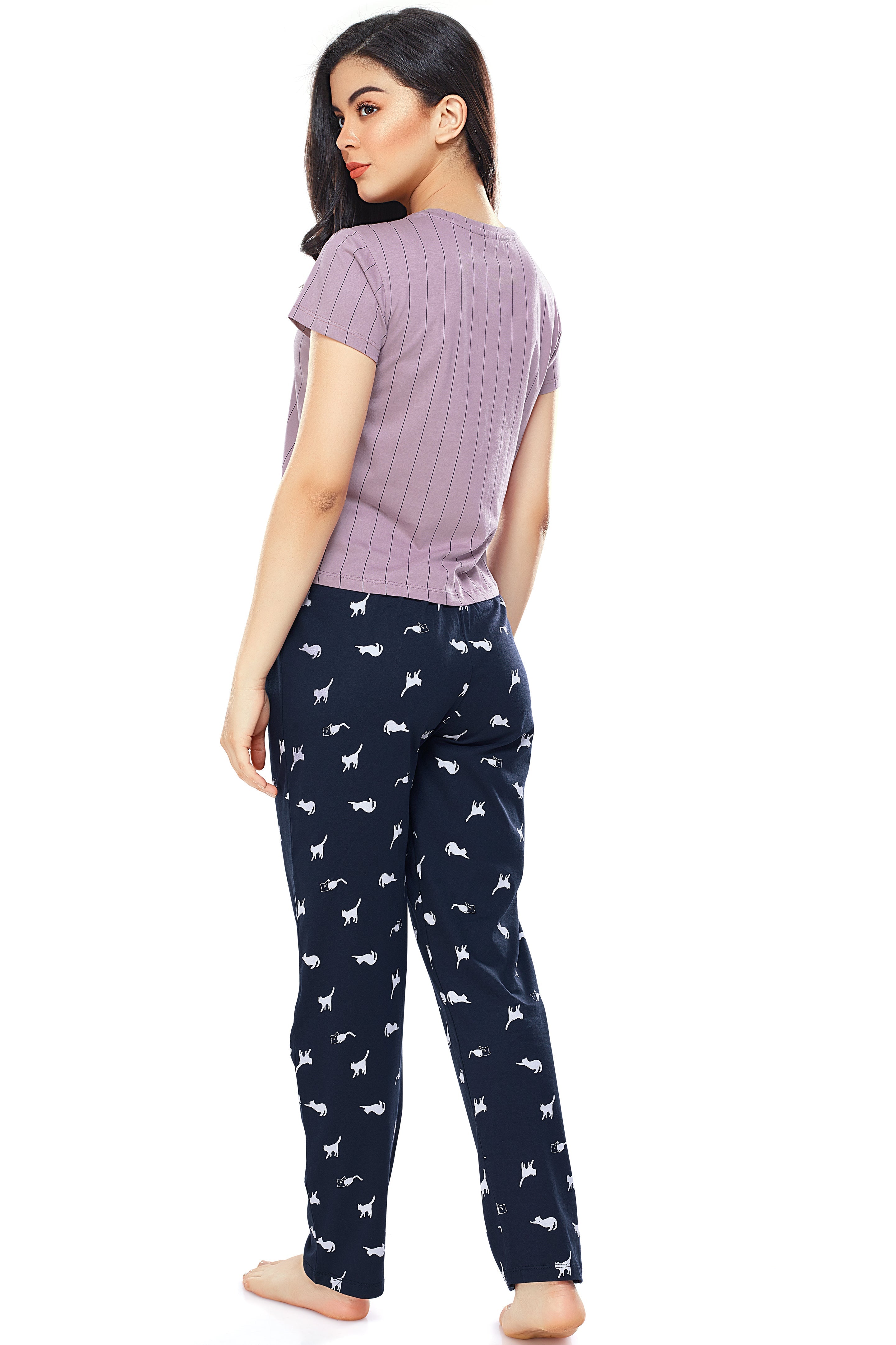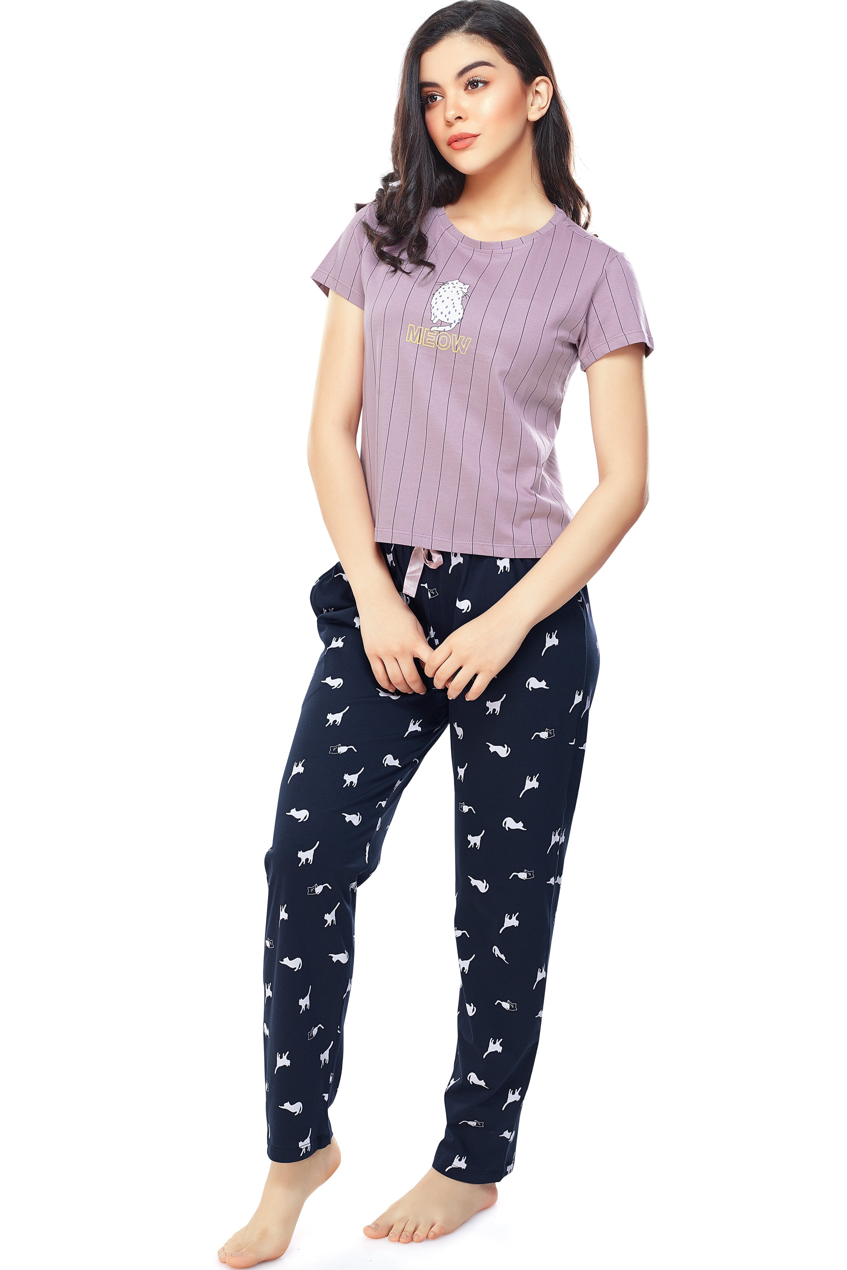 - Purple and navy blue night suit consists of crop top and pyjamas